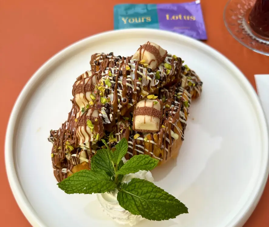 <b>İçindekiler:</b> Tereyağlı Kruvasan Arası Nutella Ve Muz Parçaları,Üzeri Vanilya Kreması,Sütlü Çikolata,Bitter Çikolata,Bueno Çikolata.